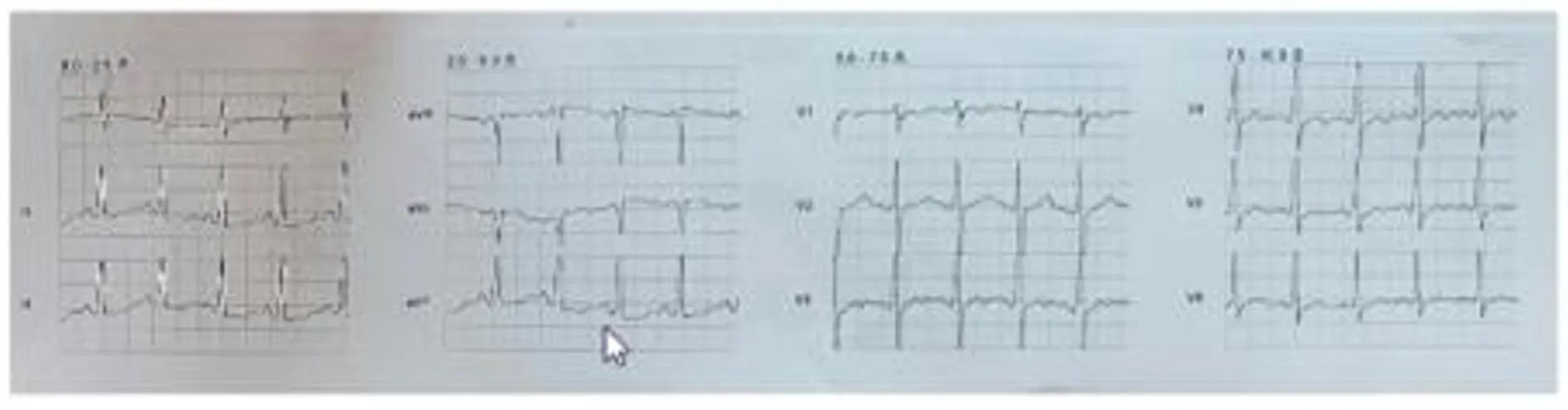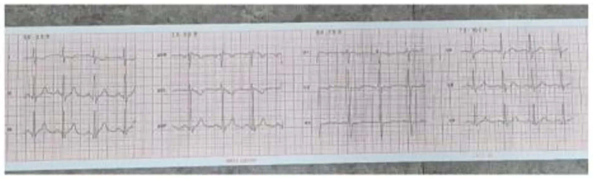 위 사진과 같은 구급 심전도를 분석하실때는,