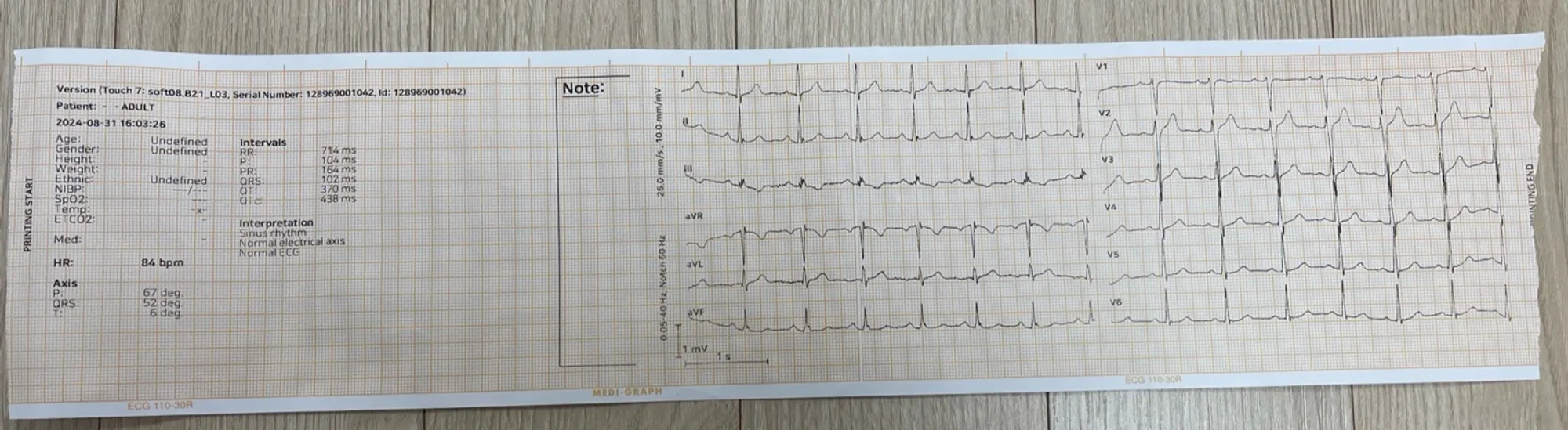 4 x 3 / 2 x 6 / 1 x 12 at 25mm/sec, 10mm/mV scale로 시행된 심전도만 분석 가능합니다.