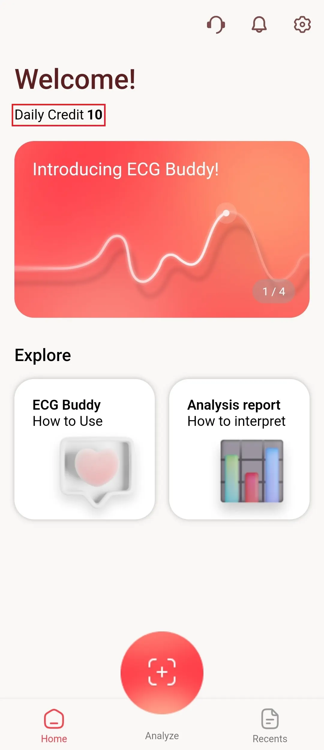 After logging in, check the Daily credit count at the top of the home screen.