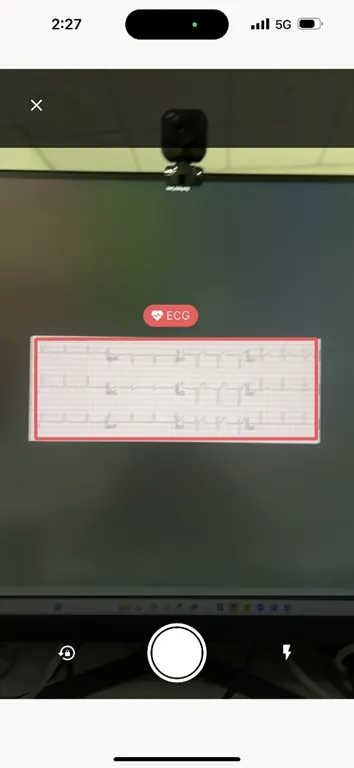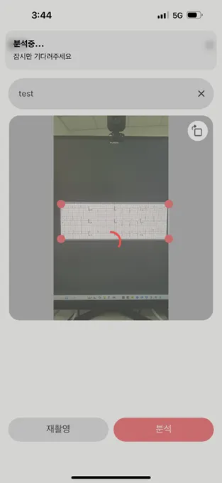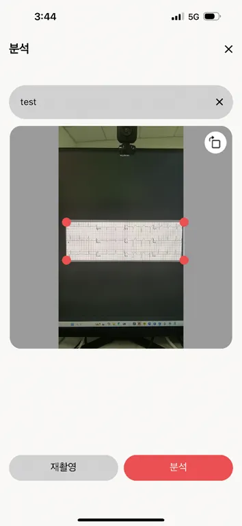 촬영 화면에서 심전도 이미지의 영역이 자동으로 감지됩니다.