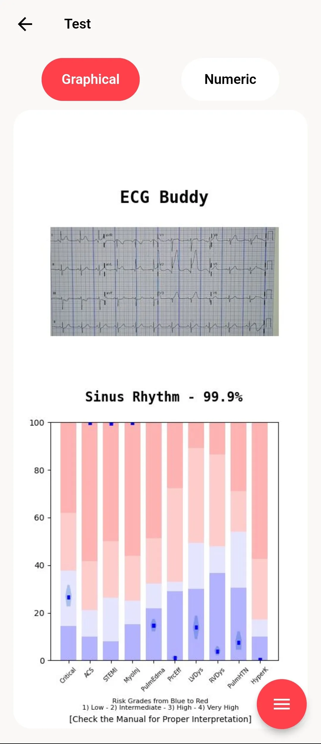 Displays the heart rhythm type and probability based on the ECG image analysis results.